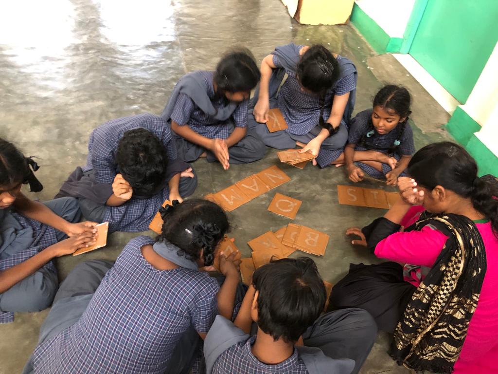 Children learning Art and Craft with the special trainer Dr. Sudha Srikanth from Banagalore.